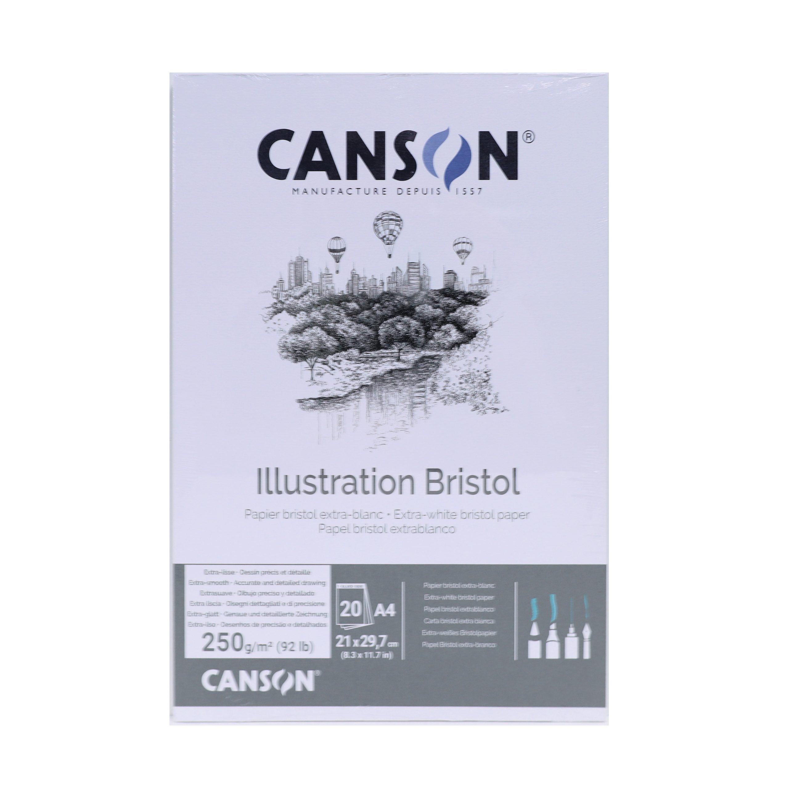 The Canson A4 Bristol Extra Smooth Surface Pad (250gsm) is a premium-quality pad designed for artists, illustrators, and designers who require an ultra-smooth, high-white surface for precision work. Each pad includes 20 sheets of 250gsm bristol board, glued along the short edge for easy removal.
