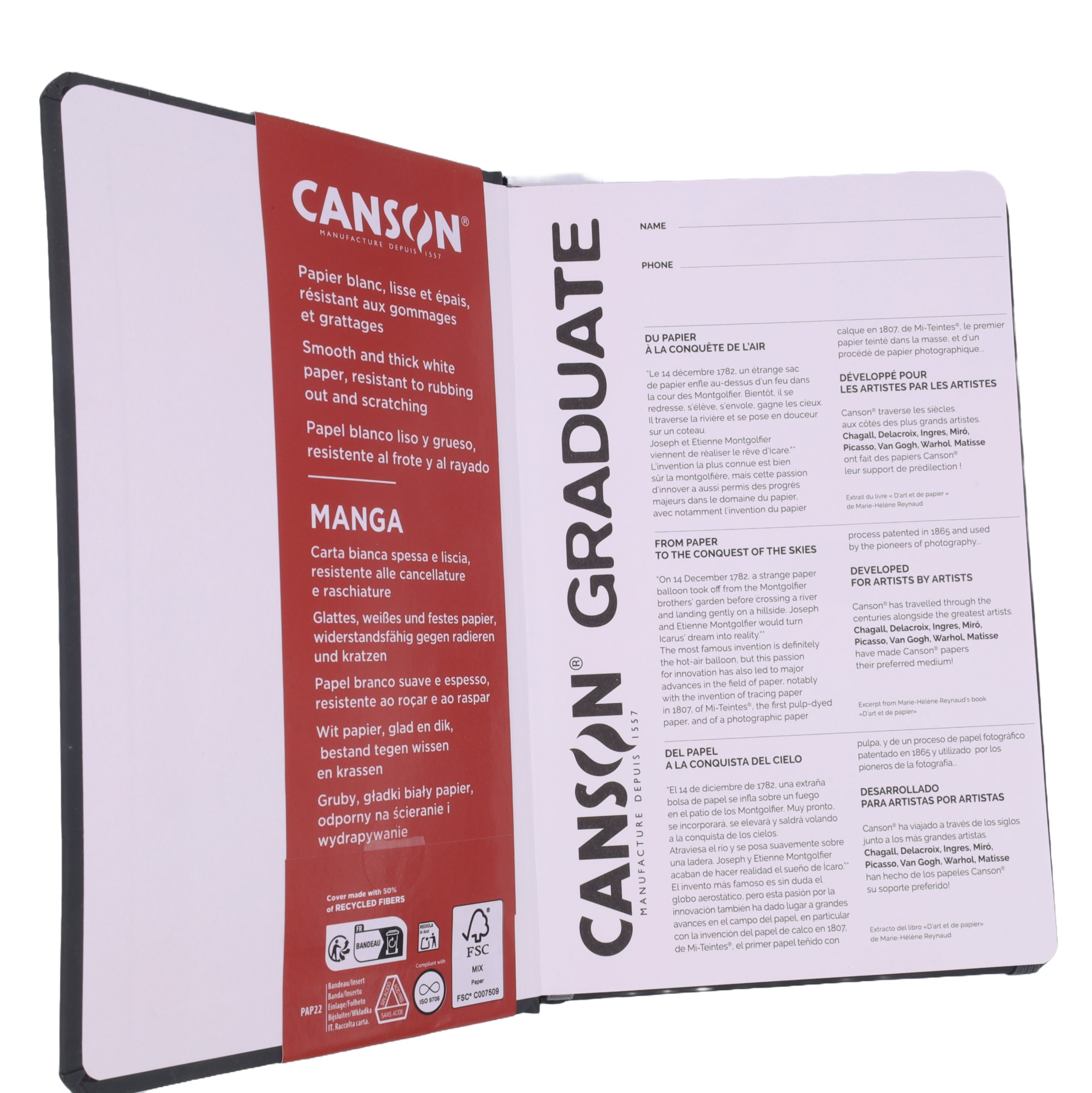 Canson Graduate Manga Pad – 8.5×11 Hardback, 200gsm, 40 Sheets, Lay-Flat , Portable Artist Journal