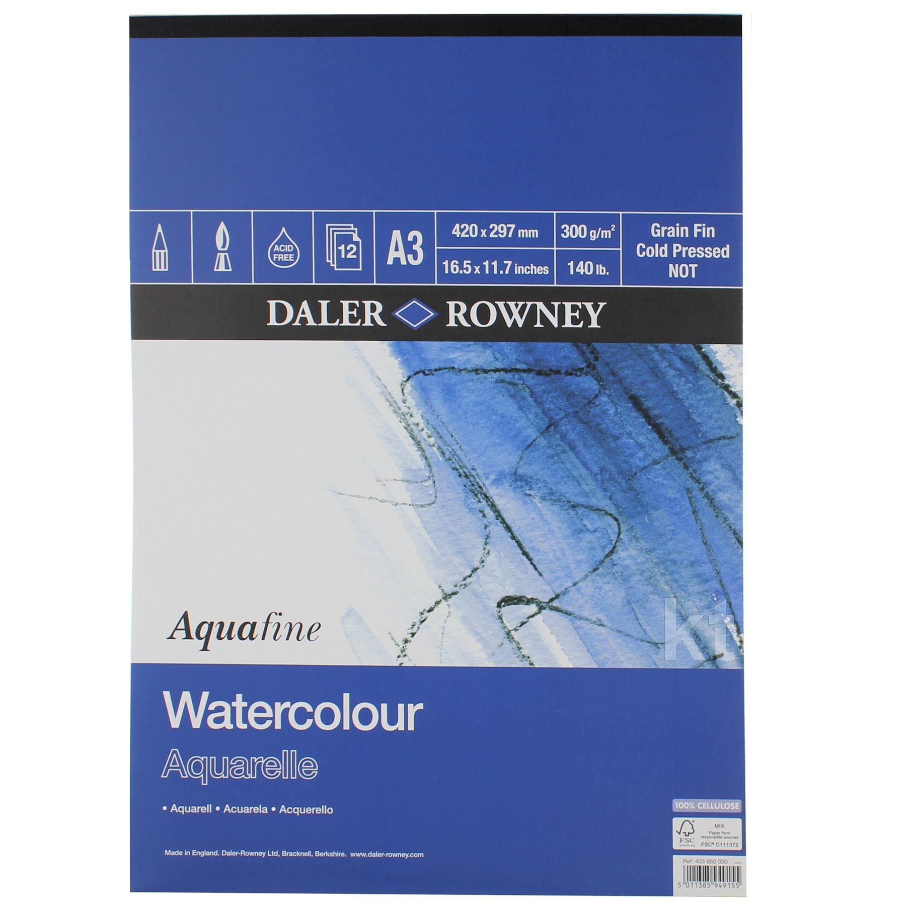 Daler Rowney A3 Aquafine Aquarelle Watercolour Pad 300gsm Cold Press 12 Sheets