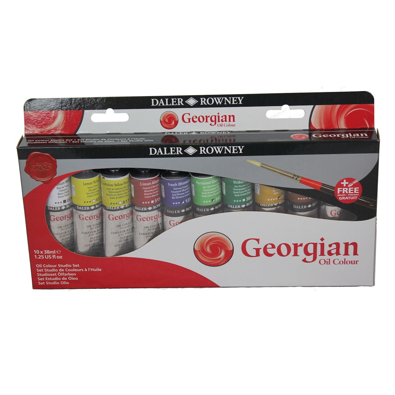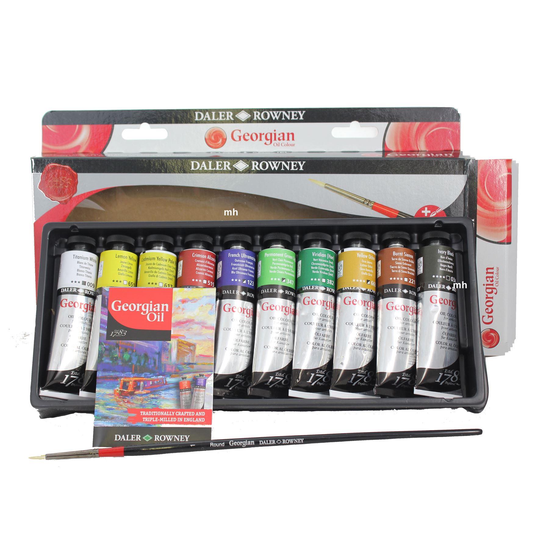 Daler Rowney Georgian Oil set 10 x 38ml. This starter set also includes the brush from the Georgian range of oil colour brushes.