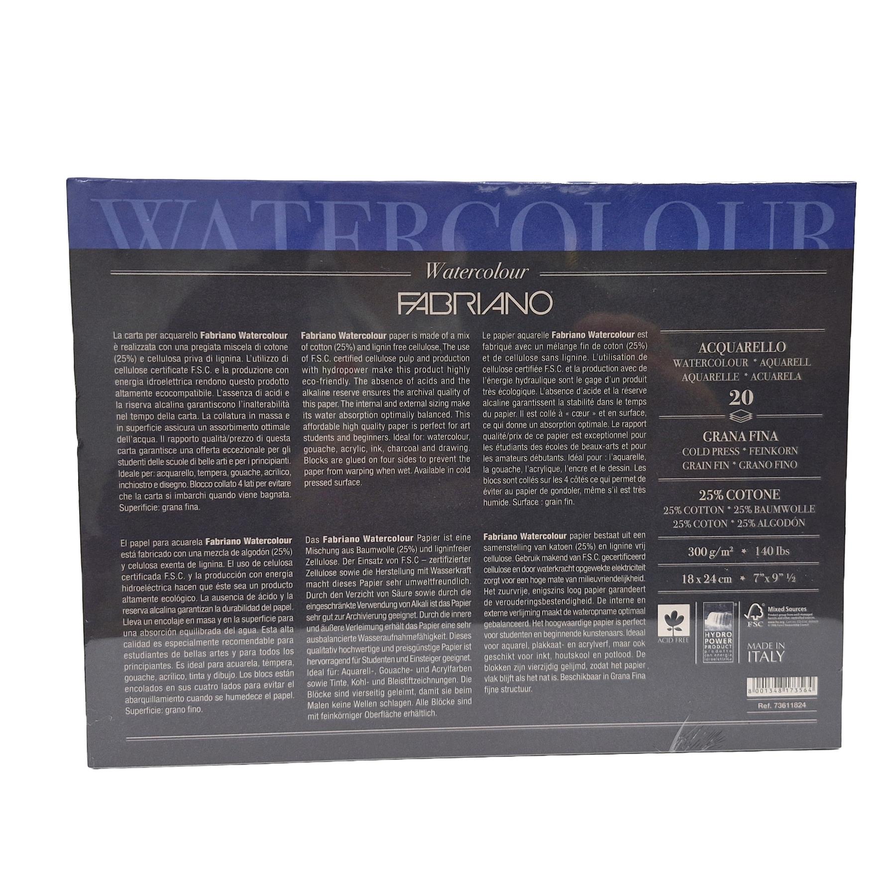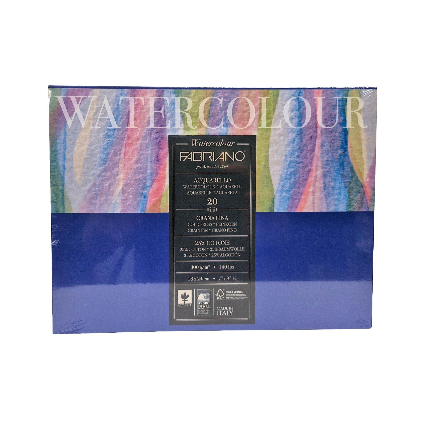 Fabriano Studio Watercolour Block 7×9.5” – 300gsm Cold Pressed, 25% Cotton