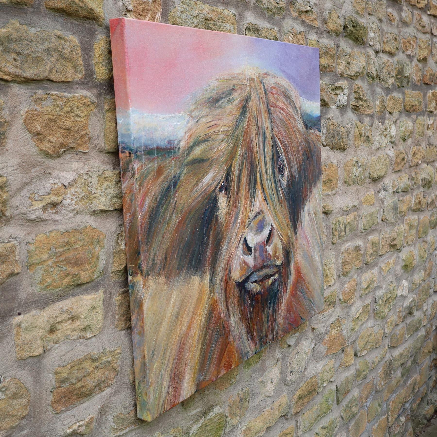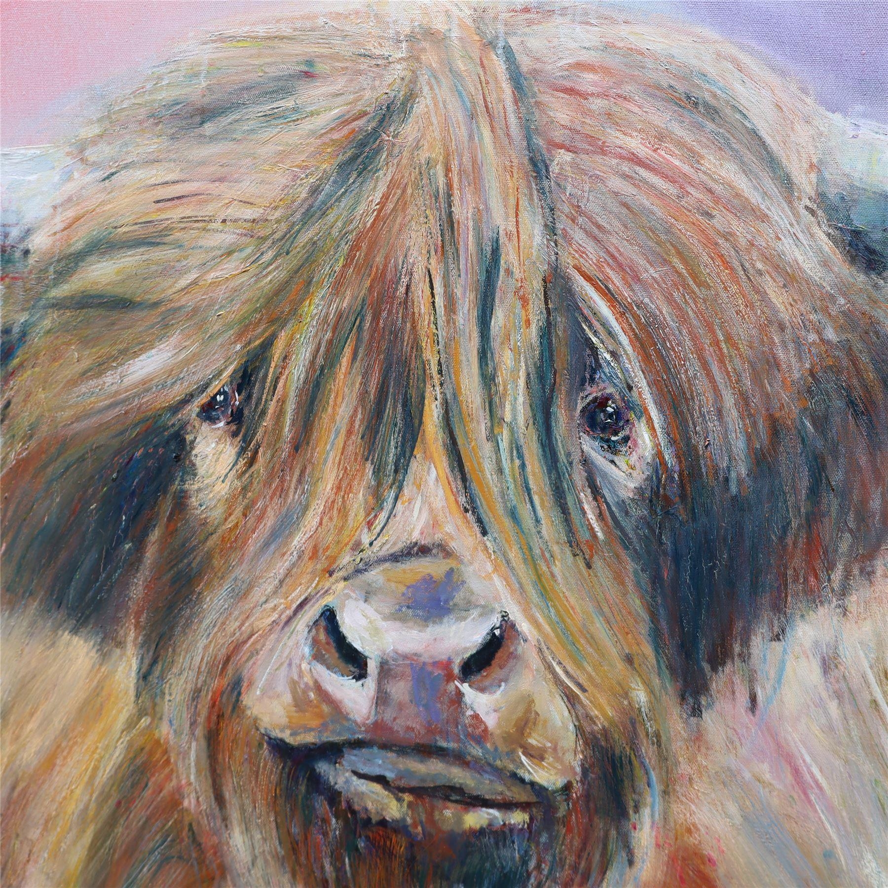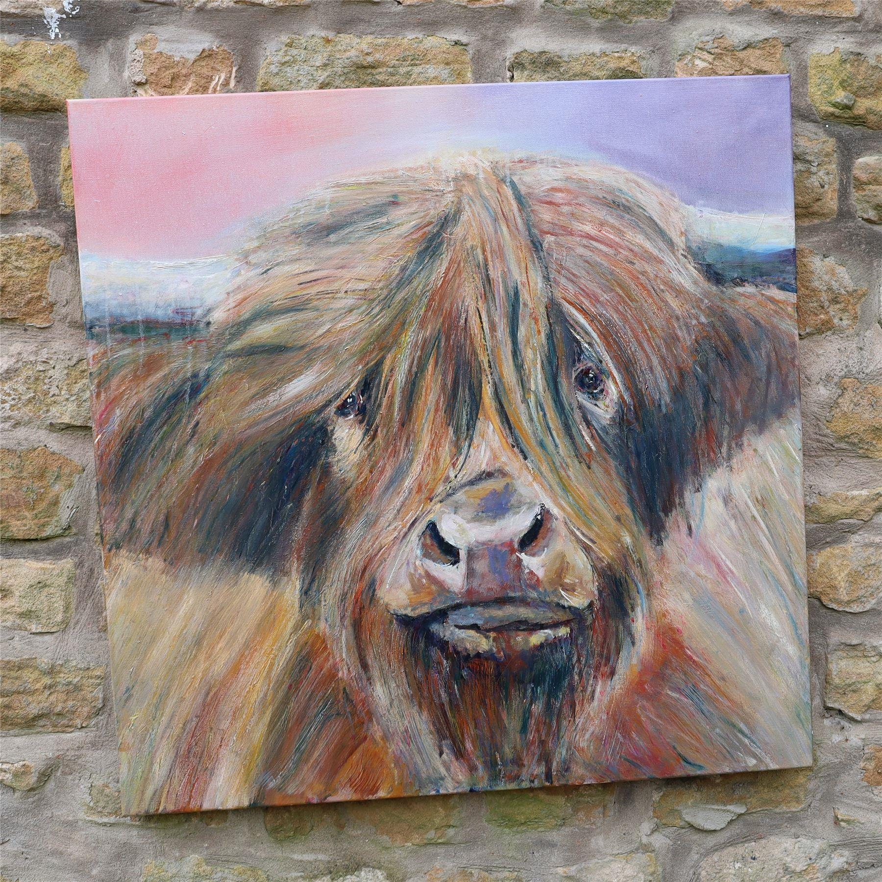 Highlan cow by Mark Hutchby 30″ x 30″ oil painting
