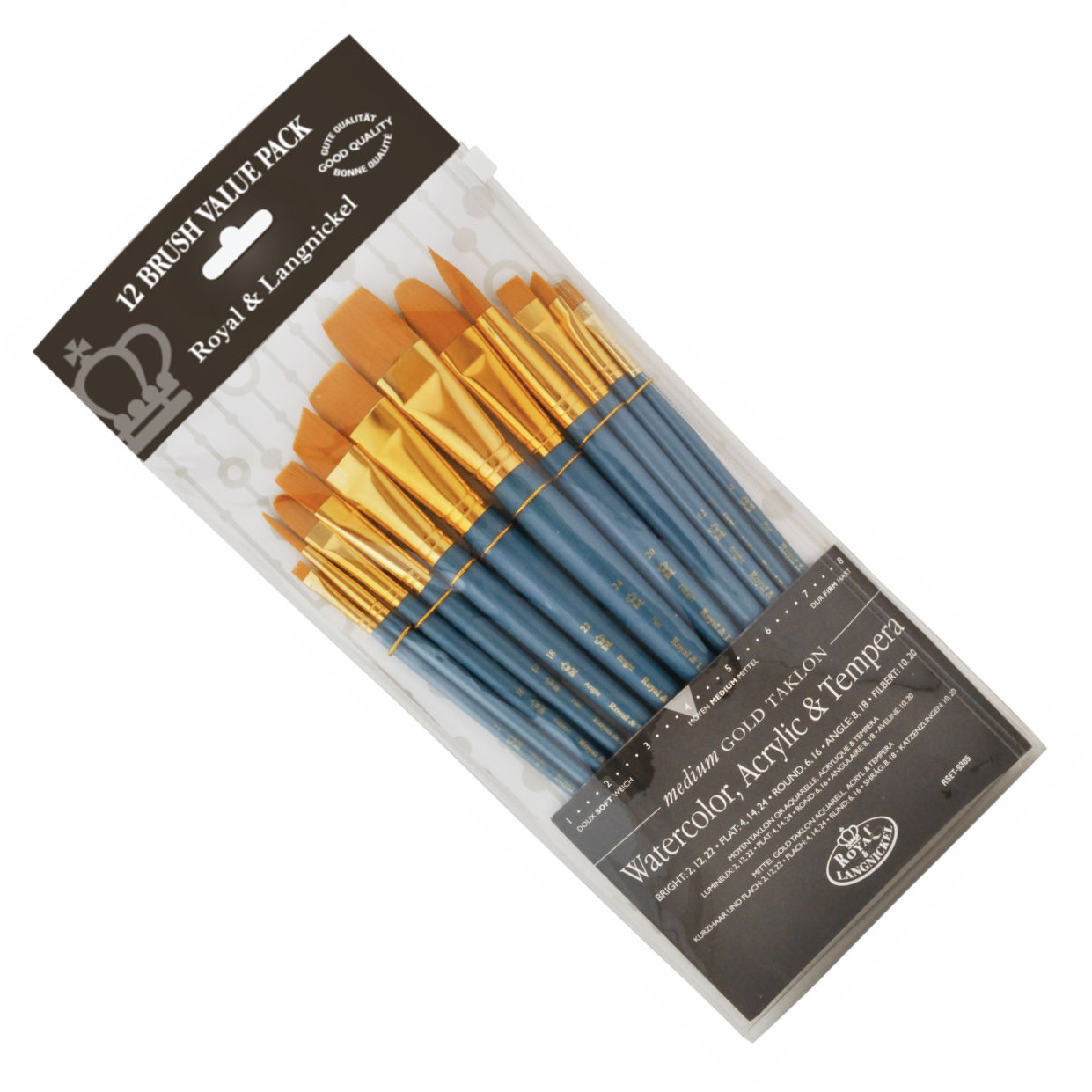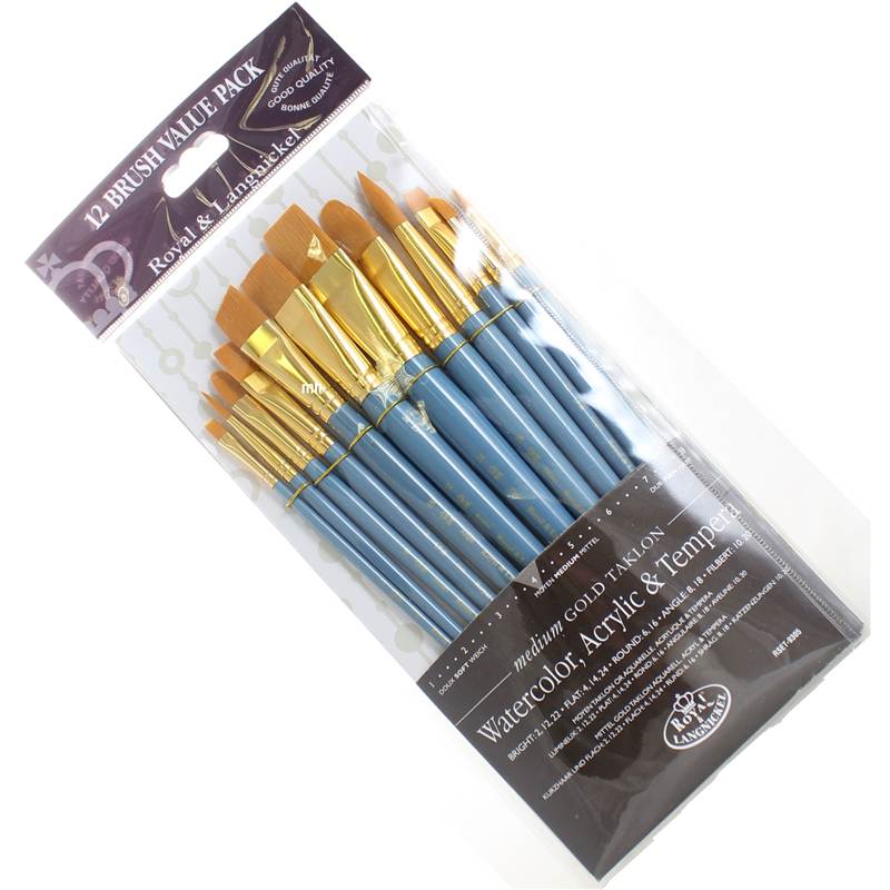 Royal & Langnickel 12 Brush Set Medium Gold Taklon Watercolour, Acrylic & Temera [Set 5]