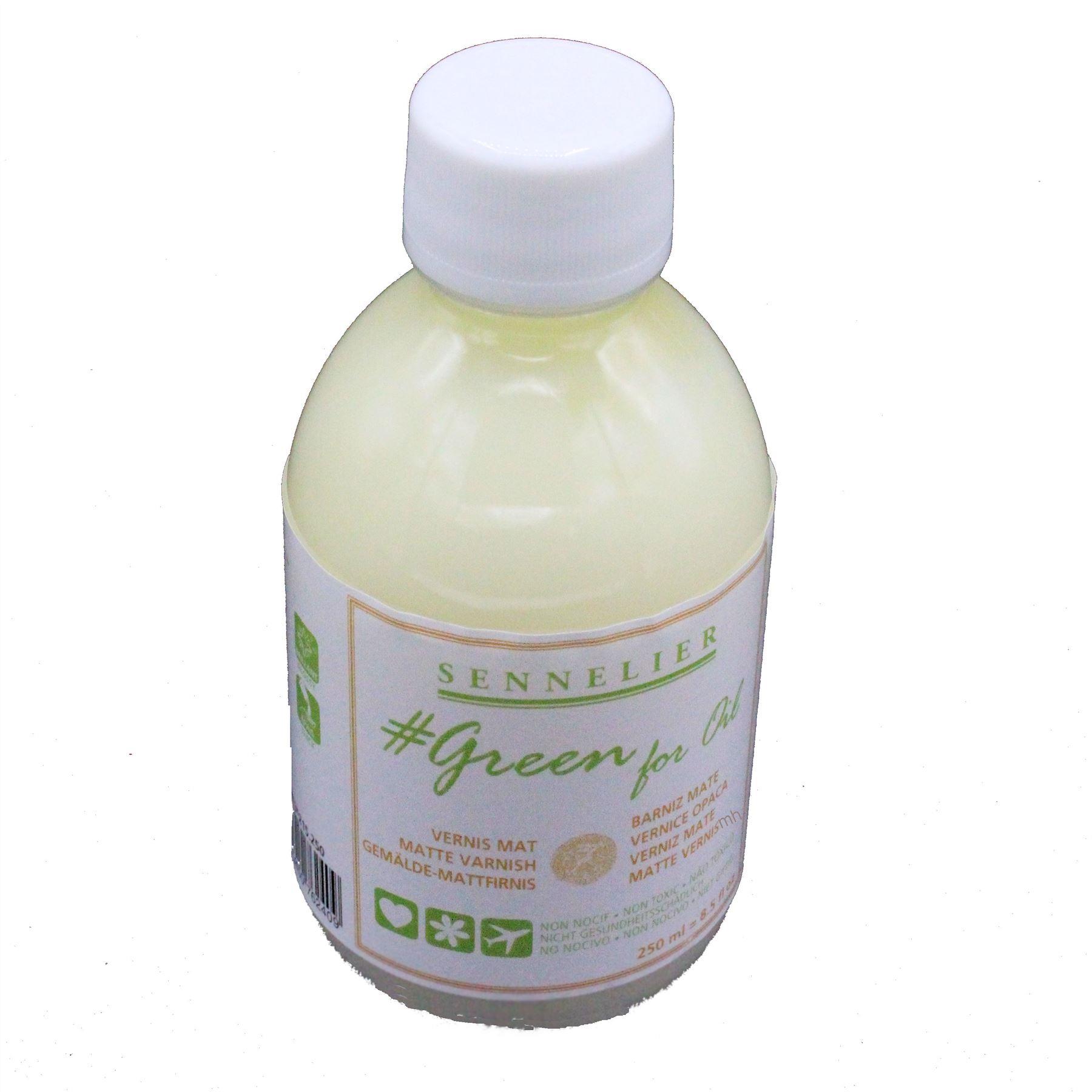 Sennelier Green for oil Oil matt varnish 250ml. Discover Green for oil; a range of non-toxic, non-flammable, non-harmful, naturally sourced painting additives for oil painting. Final varnish, protects the work, colourless and fast drying.